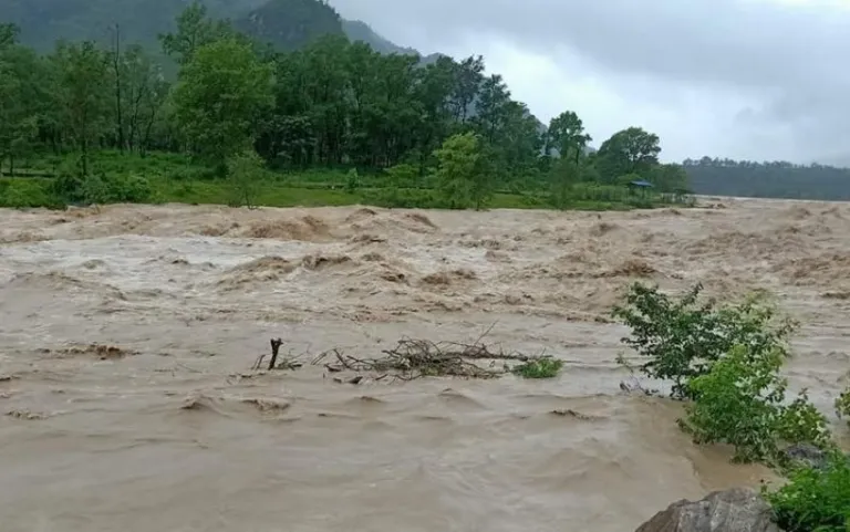 बाँकेको खजुरास्थित पेडारी खोलाको बाढी सडकमा पसेपछि आवागमनमा कठिनाइ भएको छ ।