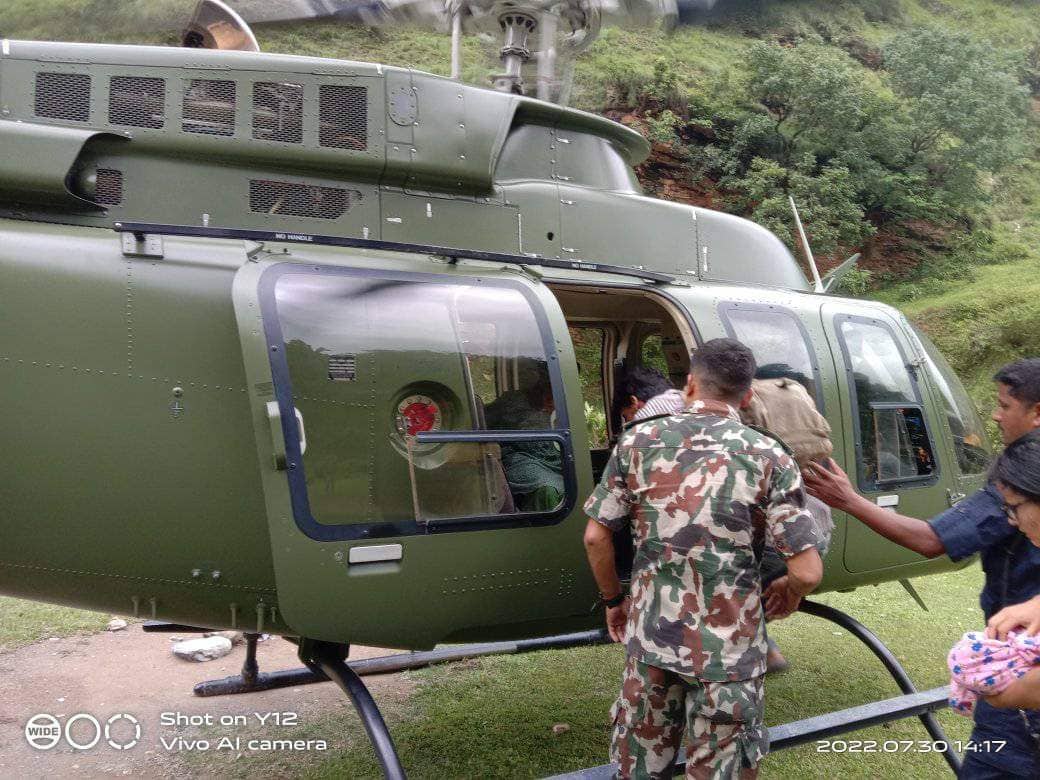 दार्चुला । दार्चुलाको लेकम गाउँपालिकाबाट एक सुत्केरी महिला र नवजात शिशुको हेलिकप्टरमार्फत उद्दार गरिएको छ । लेकम गाउँपालिका–२ गराडी भाटाइजर बस्ने ३० वर्षीया काली सार्कीको नेपाली सेनाको हेलिकप्टरमार्फत उद्दार गरिएको हो ।