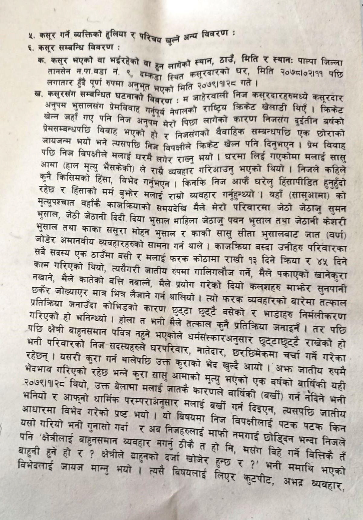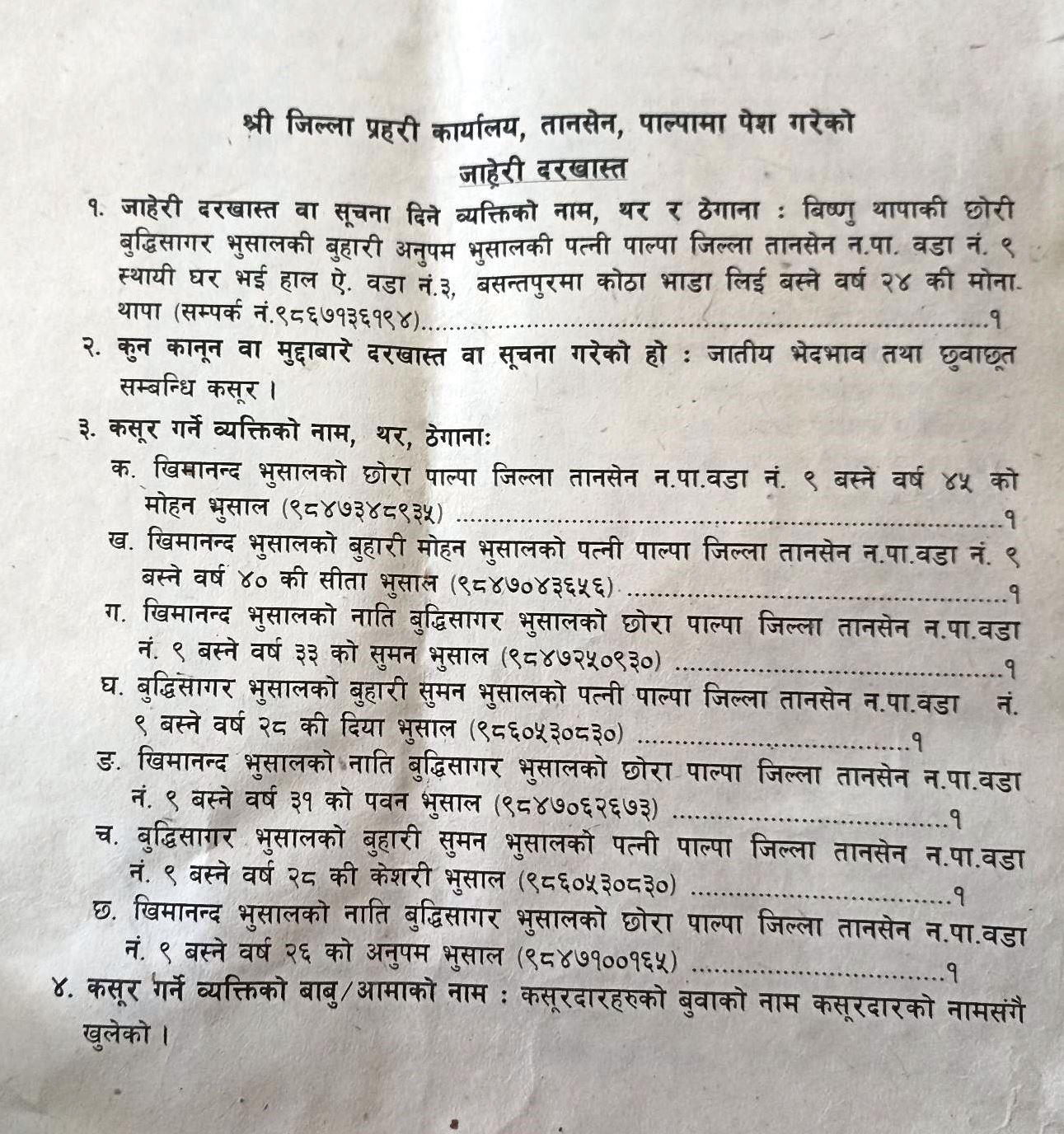 ब्राह्मणले क्षेत्रीमाथि जातीय विभेद गरेको भन्दै ७ जनाविरुद्व जाहेरी (जाहेरीसहित)