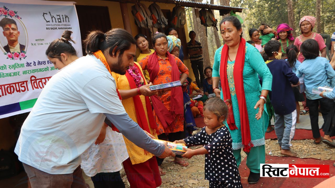 विद्यालयका ४३ जना विद्यार्थीलाई कापी कलमलगायतका शैक्षिक सामाग्री वितरण गरिएको थियो । यस्तै जगन्नाथ टोल विकास संस्थाका दुई सय जना भन्दा बढीलाई लत्ताकपडा वितरण गरेको छ । यस्तै करिब २५० जानालाई खाना पनि खुवाईएको गेट वे मेन्स एसोसेरिज र चेन क्लोथिङ स्टोरर्सका संचालक बिनोद न्यौपानेले जानकारी दिनुभयो ।