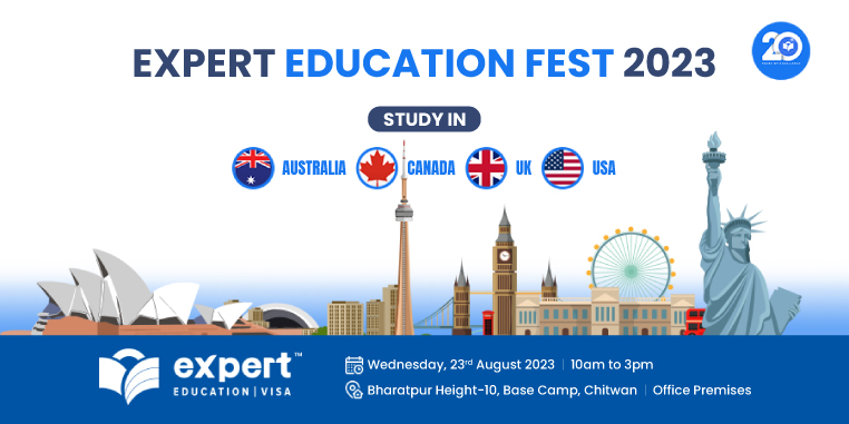 एक्स्पर्ट एजुकेशन एण्ड भिजा सर्भिसेज चितवनको आयोजनामा ‘एक्सपर्ट एजुकेशन फेष्ट–२०२३’ हुने भएको छ ।