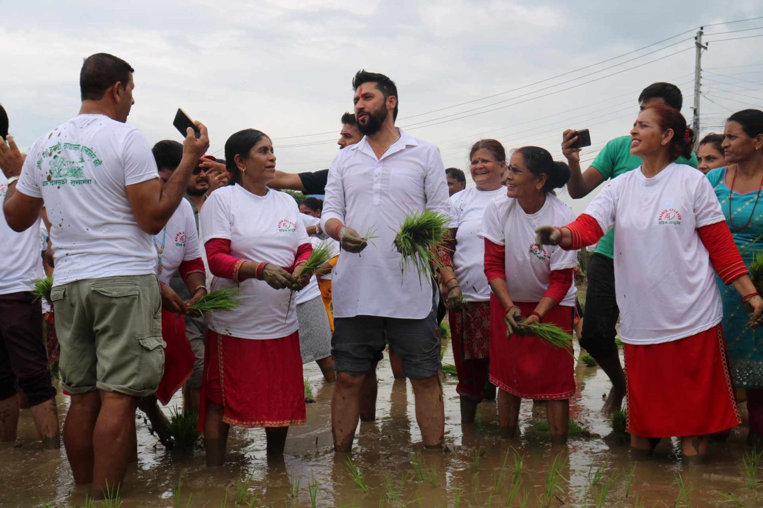 चितवनमा धान रोप्दै रबि लामिछाने