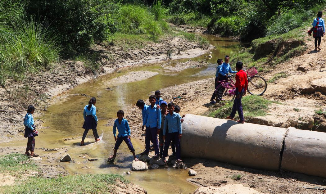 खोलामा पुल नहुँदा विद्यार्थीलाई सास्ती