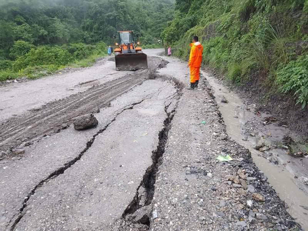 सिद्धार्थ राजमार्गको पाल्पा-बुटवल सडकखण्ड भासियो