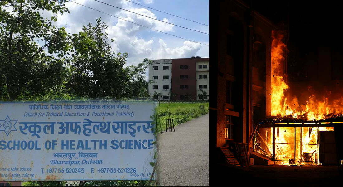 भरतपुरको स्कुल अफ हेल्थ साइन्समा आगलागी, करोडौंको